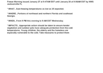 Freeze Warning from Jan 27 – Jan 28, 2026